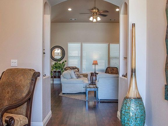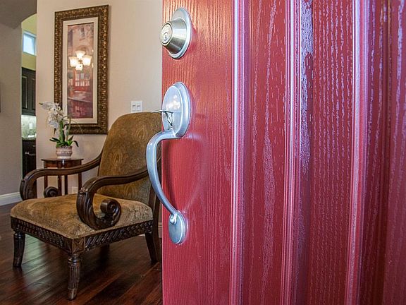 Pristine 4 Bedroom pool home in gated community-Providence Estates. Step onto engineered wood floor flowing into formal dining room, kitchen and nook open to great room with raised hearth on corner fireplace/mantel. Granite, stainless appliances, under cabinet lighting, recessed lighting and wrap around raised bar. 10' Ceilings, 8' Doors, Fire sprinkler system, wired for alarm and cameras, RV parking, sink in laundry room. Double sinks in hall bath. Owner's suite shows magnificently with master bath offering jetted tub, double sinks, linen cabinet, walk-in closet. Extended patio overlooks sparkling pool and spa with waterfall at damn, short wall at back of pool gives totally finished look. Artificial lawn and newer plantings reveal the clean look as it continues to side yard RV parking with dump/power. Double gates for easy access. Rock hardscape from Badger Hill has veins and adds to yard. 3 car garage has a wall of custom storage cabinets and painted/sealed flooring.
