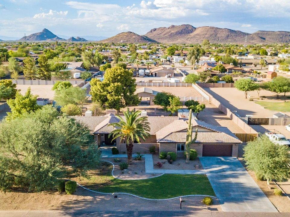 Wow...This one-of-a-kind property is a must see! Beautifully updated farmhouse on 1+ acres with full horse setup--your own mini horse training facility. Gorgeous NEW plank tile, paint and carpet throughout. Beautiful kitchen boasts new maple cabinetry, granite, stainless steel appliances, huge island, dual sinks + pot filler. Cozy brick fireplace in great room, farmhouse dutch door to backyard. Two masters/split floor plan. Large master suite offers double sinks, jetted tub, walk-in closet + exit to backyard. Sep workshop/storage in garage + RV gate. Backyard features covered patio, mountain views, citrus trees, block fence + power for RV. Freshly painted barn, 3 12x12 fully enclosed stalls w/runs, tack room w/water & electric, arena, covered hay storage + NEW 3-rail white vinyl fencing! Just a few more features: new dual pane windows, ceiling fans and large laundry room with folding station.