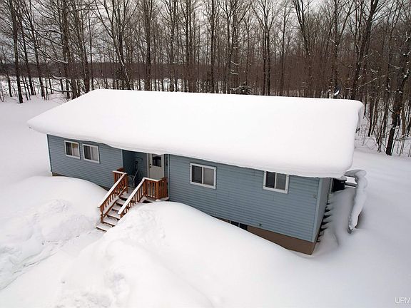 Discover the perfect combination of space, privacy, and convenience with this ranch-style home in Stanton Township, MI! Situated on 9.95 acres of wooded land, this property offers more than 2,300 sq. ft. of living space and is located just under 10 minutes from downtown Houghton—giving you the best of both worlds: rural charm with quick access to city amenities. Inside, the main floor boasts a well-designed layout, featuring a spacious living room, a functional kitchen with an adjoining dining area, and three bedrooms with two full bathrooms. The primary bedroom provides a comfortable retreat with plenty of natural light and easy access to its own full bath. The full finished basement offers even more space, including a large bonus room perfect for a home gym, entertainment area, or hobby space. Two additional bedrooms downstairs provide flexibility for guests or a home office. The expansive basement offers plenty of storage and additional living space, making it ideal for a variety of needs. Outside, nature lovers will appreciate the mature woods with scenic trails, ideal for hiking, wildlife watching, or year-round outdoor activities. The property also includes a small garden shed and a good-sized workshop with electricity, perfect for projects, storage, or extra workspace. With its spacious layout, beautiful setting, and prime location just minutes from Houghton, this home is a rare find. Schedule a showing today and see all it has to offer! • NOTICE: All information believed accurate but not warranted. It is the Buyers obligation to inspect the property and verify all information. The buyer bears all risks for any inaccuracies. Tax information is subject to change. Taxes are not 0. References to square footage, lot size/dimensions, and age are approximate.