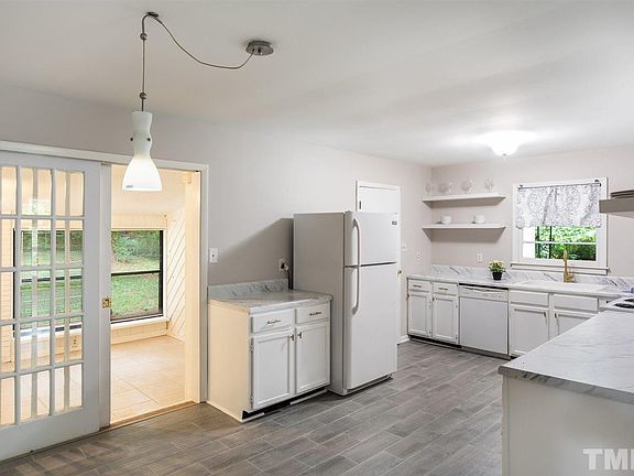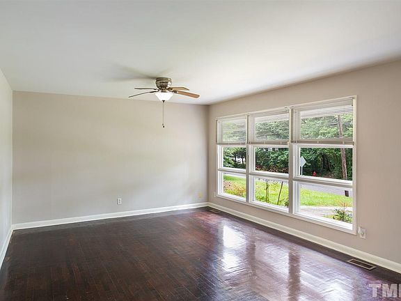 This adorable 3bd / 2ba rambler is back on the market at a reduced price with plenty of upgrades. Nestled in the heart of Parkwood on nearly 1/3 acre, this beautiful home boasts updated bathrooms and recently refinished hardwood floors throughout. The fenced private backyard has a cozy deck off the sunroom. The friendly neighborhood has a lakefront park and community pool. Centrally located, this home is minutes from shopping, dining, and entertainment at Southpoint, Duke, UNC, and RTP.