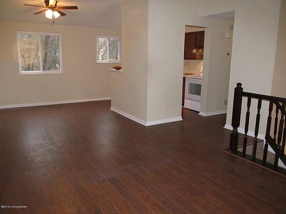 This home on a quiet cul-de-sac is newly renovated and move-in ready! New flooring (hardwood laminate) and paint throughout. Great open floor plan. Kitchen has new solid-surface countertops and new smooth-top stove, and is open to dining and living area. Both bathrooms have been updated and have ceramic tile flooring. Lower level has large family room with fireplace, and bedroom with en suite bath. Huge fenced-in back yard has mature trees. Nearly all of lower level is above grade.