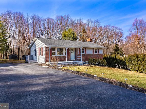 Lovely setting for a Lovely Rancher! Living room w/Big Bay Window, Updated Oak & Corian Kitchen, Formal Dining Area with Slider to Super Spacious Covered Deck and private back yard. Hardwood under carpet on main level. Finished Lower Level features one large Rec Room w/Woodburning Fireplace & slider walkout to side yard. 2 Storage Sheds, Covered Front Porch.
