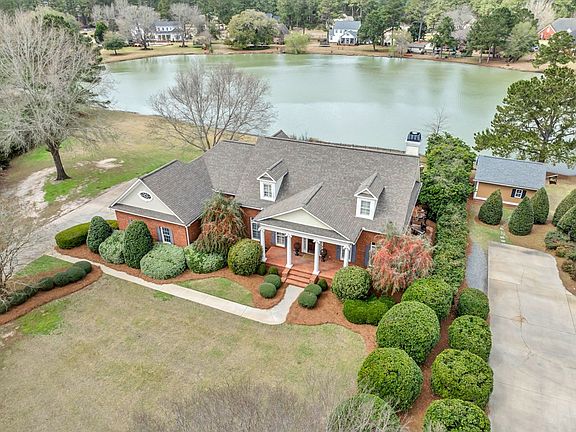 Wonderful 4-5 Bedroom home on one of the prettiest lots in HIdden Lakes! Overlooks the lake and has an outdoor kitchen to enjoy year round! The interior has many outstanding features, 10' ceilings, pine floors, deep crown molding, deep baseboards, plantation shutters..all built with quality construction.. The Foyer has 20 ceilings with stairway that leads upstairs. Spacious Dining Room on front of home and Living Room on front of room with many windows, ideal for music room, had double doors that can be closed off for privacy. Family Room with Fireplace/gas logs and bookshelves...Majestic views of lake to enjoy! Fabulous kitchen with quartz countertops, recently replaced, quartz island with a bar and breakfast area with great views! New Over/MW, dishwasher, oversize vent hood,concrete sink, brick-style backsplash, pantry, built-in desk with quartz countertops. Powder Room off kitchen. Laurdry Room off kitchen with sink. Beautiful Primary Bedroom w 20' vaulted ceiling is downstairs with stunning views(large window) of the lake and pool. Primary bath with his/her walk in closets, plus his/her vanities. Oversized shower and whirlpool tub. Winding stairway with wrought iron railings that lead upstairs. The second leveal has three other spacious bedrooms and two baths. One. more large playroom that could also be a 5th Bedroom. Hardwood hallway with Many closets for storage. One bedroom has a private bath, ideal for guests. Two other bedrooms have adjoining bath. Excellent closets! The best back porch in town has an outdoor kitchen with grills,icemaker, outdoor dining and sitting area wo watch football games in the fall!! Brick flooring on porch. Beautiful pool to enjoy ! One of the beauties of this porch is that sunsets are breathtaking! Also there is a brick fireplace for chilly nights with plenty of firewood to enjoy fires in the winter! Home has mature landscaping and irrigation system. Home is on a a very quiet street on a cul-de-sac. HIdden Lakes has a private community area that one can enjoy and can fish and enjoy gatherings in this area, very near this beautiful home!!! Call to view this home that has so much character and charm inside and out!