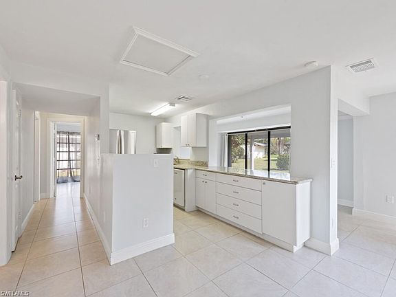 Great Location and Affordable. This move in ready, freshly painted 2 bedroom/2 bathroom home has tile thoughout, stainless steel appliances, granite countertops, screened in lanai and entryway. There is an attached 1 car garage. The Roof was replaced in 2019. The HOA fees are low and include all water (irrigation, personal use, sewer), lawn maintenance, tree trimming and management services. Lives like a single family home where pets are allowed. This home is perfectly situated in a quiet neighborhood with a walking/bike path, close to Naples Botanical Garden, Naples Pickleball Center, Celebration Park, and a quick drive (approximately 5 miles) to Naples beach and downtown.