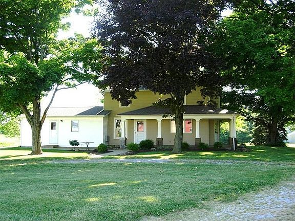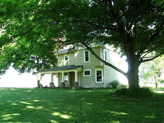 Quiet & Peaceful 6 Acre Country Setting ... Outstanding View From Top Of The Knoll... Mature shade trees overlooking this two story home w/ over 2000 sq.ft of living space, featuring beautiful antique wood work throughout. Updated eat in kitchen w/ breakfast bar & dining. Gorgeous antique oak fireplace mantle in the living room. Stunning open staircase leading upstairs to 3 bedrooms. Everything you would wish in a small farm w/ older barns for livestock or storage. Make Plans To See...