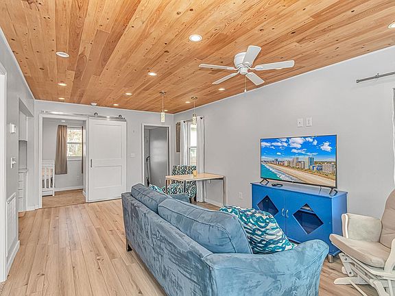 Welcome to the most adorable nostalgic and renovated beach cottage! This cozy home, nestled in the heart of Myrtle Beach, is the epitome of coastal living. With 2 bedrooms and 1 bathroom, this charming property has undergone a complete transformation, offering a perfect blend of comfort and style. As you pull into the driveway, the curb appeal of this cottage is immediately apparent. The exterior radiates a welcoming charm, setting the tone for what awaits inside. Step through the original solid wood front door into a spacious bright and open concept living room, dining area, and kitchen – an ideal layout for entertaining. The primary suite is a true haven, featuring a beautifully updated bathroom with modern fixtures and a new vanity. The owner kept as many original finishes as possible to keep the original charm while modernizing the parts we all crave in modern times.  The guest bedroom, strategically separated from the primary suite, adds an extra layer of privacy for both residents and guests. The kitchen boasts new stainless steel appliances, brand new quartz countertops, and fresh cabinetry with ample shelving. Whether you're preparing a gourmet meal or a quick snack, this kitchen is as functional as it is stylish. Convenience is key with a designated laundry closet equipped with a stackable washer and dryer. Additionally, a mud/storage room provides extra space for storing beach essentials, ensuring a clutter-free living environment. Beyond the cottage, the location is unbeatable. Take a short golf cart ride to the beach for a day of sun and surf, or hop in the car for a quick drive to explore the myriad of attractions, restaurants, and shopping that Myrtle Beach has to offer. This property is not just a home; it's a lifestyle. Embrace the coastal charm, modern amenities, and unbeatable location – your perfect beach getaway awaits! Measurements are not guaranteed. Buyer is responsible for verifying.
