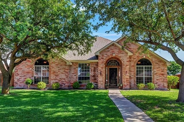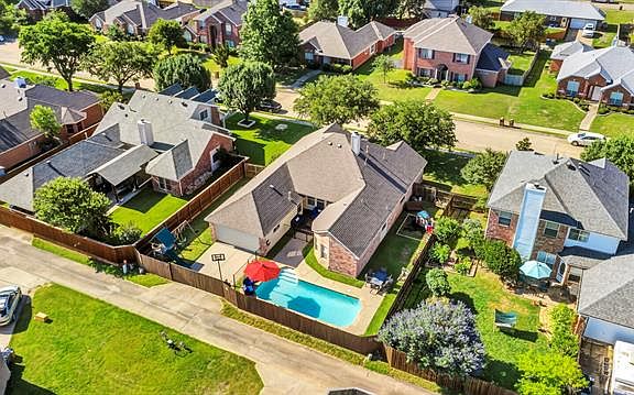 Absolutely charming one story with pool! Fabulous layout with 4 bedrooms, a study or second living space plus a formal dining room! So much flexibility with this floorplan! Updates throughout including granite countertops, painted cabinets, updated appliances(2018-19),resurfaced pool(2019),new pool filter (2019), new HVAC (2019) and so much more! All of this in fabulous location just minutes from George Bush and The Station in Sachse! Not only do you have a beautiful pool in the backyard, with the sliding electric gate you have two side yards with plenty of space for play! Lovely drive up appeal with mature trees framing this beautiful home. No HOA! Hurry! Don't miss this one! Showings begin Saturday June 6th