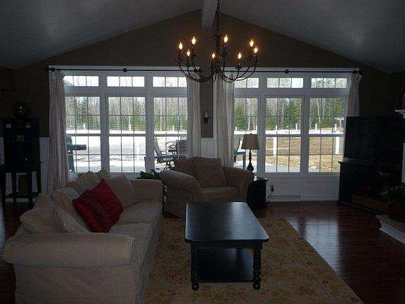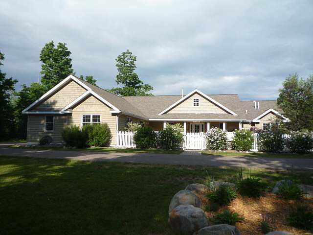 Mud Minnow Lake Road Home - There is nothing in today's market that will compete with this spectacular offering. Priced to sell below replacement value & FMV, this privacy parcel offers you an executive 2700 sq ft cedar sided country home complete w/split bedroom floor plan including a massive master suite w/soaking tub, a sprawling great room w/fireplace & WINDOWS everywhere. There are also an additional 2 bedrooms, office, utility room & a 3-car garage all on the main level. There are patio doors off the master suite as well as off the kitchen/dining area that give you ample opportunity to have your morning coffee while taking in the sounds & views of nature. This home sits tucked away on 35 acres within 5 miles of Eagle River and is ideal for the avid hunter too. The acreage parcel is 90%high land & loaded w/ATV & HORSE trails for your own private recreation. There is also loads of landscaping, fencing, an additional pole building plus a full unfinished basement.