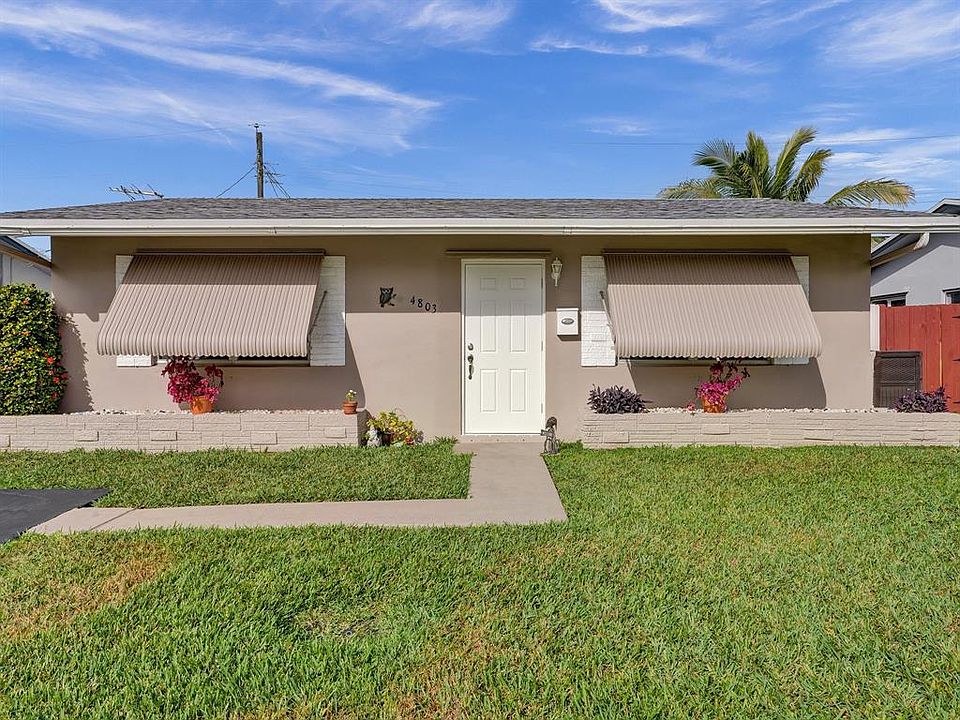 Single Family home. All ages. 2 Bedroom/ 1 Bathroom. Brand new roof. Freshly painted inside and exterior. New tile floors. Bathroom has been updated. Screened in Florida room. Fenced in backyard. Low HOA fee of $113 per month. HOA covers exterior painting every 4 years, Lawn maintenance, sprinklers. Walking distance to the community pool. Close to Highways, Shopping, Restaurants, Beaches.
