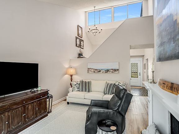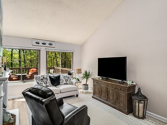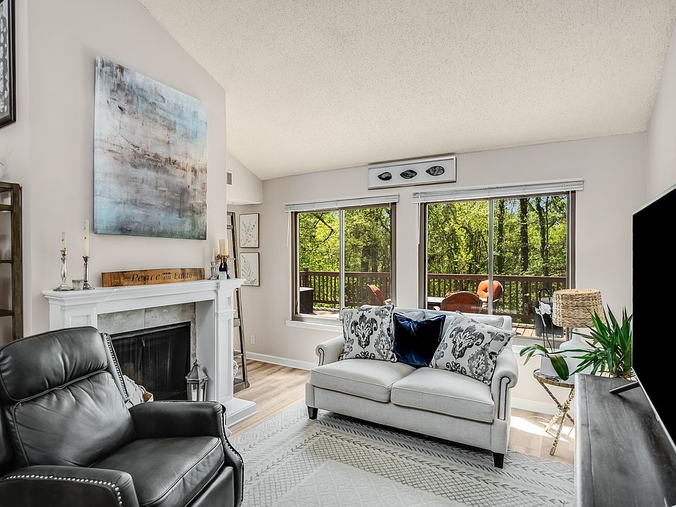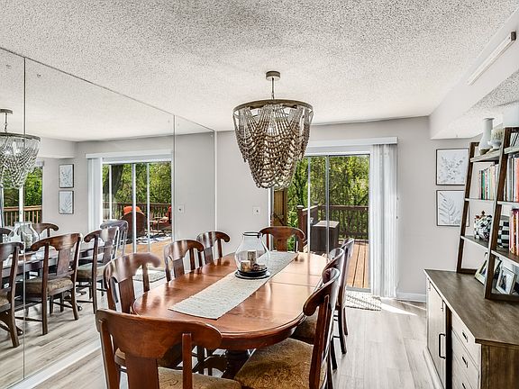 Lake Living just in time for the summer! Rarely-available, spacious, bright & airy Woodlake end unit condo w/ $60K+ of upgrades and chic & timeless boho Magnolia Home vibes. Breathtaking views of unobstructed nature off the back porch / deck. Must see the vaulted ceilings and expansive whole-length deck overlooking acres of lush wooded forest. Remodeled kitchen and bathrooms including the luxurious main level primary ensuite with sliding door to private deck. Private courtyard patio entrance with flower beds and shaded entertaining area is a gardener's delight. Functional, modern kitchen includes mobile island, which stays. Effortlessly understated style with neutral hues and cozy, chic design choices. Detached 2-car garage w/ storage. End units on the back side of the complex with views like this don't come up often in Woodlake. Seller has made over $60K in tasteful updates & upgrades (list in photos). Woodlake is a small development that has a great park-like neighborhood feel.