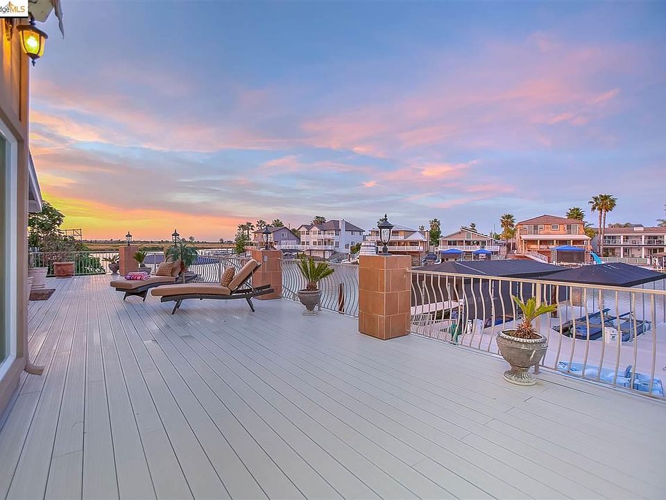 Amazing point lot.This water front home, on the picturesque Delta waters of Discovery bay.The location is perfect with the dock and deck wrapping the back of the home, the dock space has room for all your water toys and more. The property sits on the open water with breathtaking sunsets while experiencing the ultimate in indoor/outdoor luxury living. The spectacular interiors of the home are second to none. Upon entry, the residence features a grand entrance with walls of windows inviting natural light into the home from all angles. This open concept home has 4 bedrooms 3 baths which includes: an open wide kitchen with oversized center island with breakfast bar,on the main level is the master bedroom suite, with views. As you enter the upstairs you will find Vaulted ceilings with guest bedrooms and a bayside living room that flows seamlessly. A 5th bedroom can used as loft or entertaining room, the large guest rooms can be used a 2 master retreat, Beautiful new dock Must see.