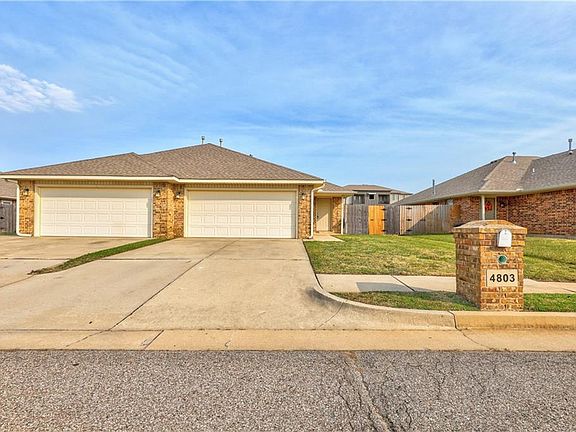 Nice duplex located minutes from Tinker Air Force Base. Each unit offers 3 bedrooms and 2 bathrooms. Other features include, large separate yards, inside laundry, and a 2 car garage for each unit. 4801 and 4803 must be sold together. Fresh paint and clean carpet!