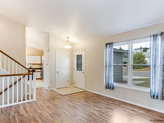 This home is a 3-bedroom, 3-bathroom residence in East Cheyenne. Enjoy beautiful city views from the backyard and spacious outdoor patio right off the kitchen. This home has all new flooring and siding! New sink and dishwasher have been installed in the eat in Kitchen. Large Primary room with a private primary bathroom. Includes a 2-car garage for added convenience. This home has been pre inspected and ready for your viewing!