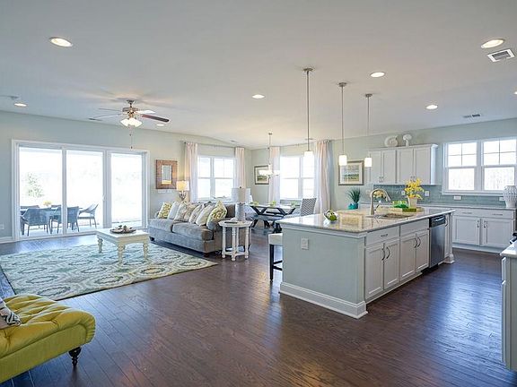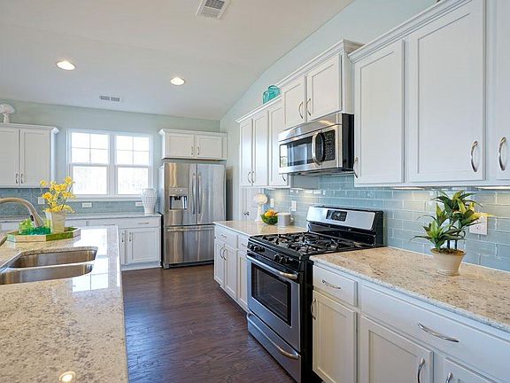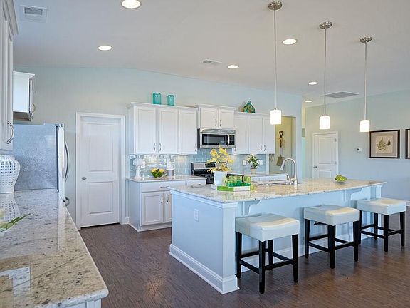 Beautiful open floor plan! Kitchen has large counter height island/breakfast bar, walk in pantry, stainless steel appliances including gas range, granite countertop and 36 inch staggered cabinets. Hardwood floors run through out the main living area with tile flooring in the bathrooms and laundry. Covered back patio is 9' x 26' with water view! New Master Planned Community in popular St. James school district. Community offers pool, fitness room, open air pavilion/clubhouse and food prep room by the pool, sidewalks, playgrounds, fishing dock in one of the many community lakes. Pictures are of same floor plan in another community and are for representation only**All room sizes and square footage could vary per elevation of plan and should be verified by buyer.