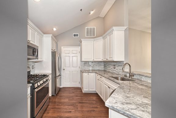 This 2nd floor, end unit offers vaulted ceilings & two spacious balconies! As you enter, you will be greeted by an immediate homey feeling with a great Kitchen, finished to today's desires w/plenty of cabinets, quartzite countertops & SS Appliances! The open floor plan gives a panoramic view of the LR, Dining Area & more. The main bathroom has a modern vanity & floor tile. The Primary BR has a walk-in closet & full bathroom! The unit has been freshly painted. The Glens offers two association pools, tennis courts and clubhouse. One month Real Estate Fee, 1.5 Month Security, 1st Month Rent due at acceptance and signing of lease. Tenant is required to complete an NTN report showing financial data and income history. Tenant insurance is required. The association requires an add'l completed application and $250.00 Non-refundable fee. Tenant is reposible for all utilities: Electric, Gas, Water and sewer.