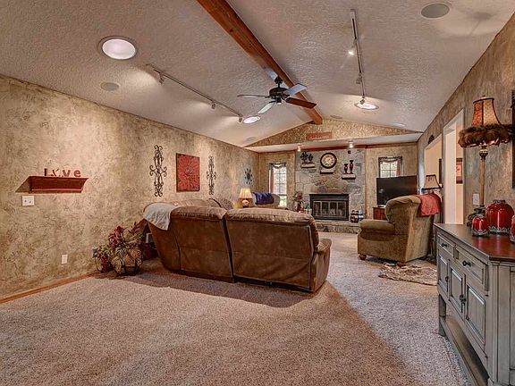 Looking for country style living with wildlife in the backyard then look no more! This ranch style home sits on 2.5 acm/l just east of Stillwater on paved roads in Wild Turkey Hollow. If features beautiful fireplace, granite counter tops in kitchen, four bedrooms with two and half baths with updates. The kitchen has lots of counter space and room. There is a storm shelter, outdoor living space, and additional garage/shop. It has a NEW ROOF with solar felt and new soffit around the exterior of the home and garage doors on the way. Speakers in the master bathroom and surround sound. Shop with concrete and electrical for two additional cars. It has wildlife regularly in the back yard and outdoor living space with a fire pit. In Stillwater school district and all paved roads is hard to find like this one.