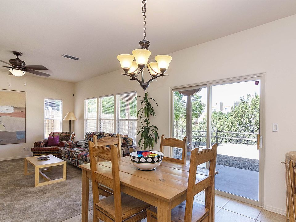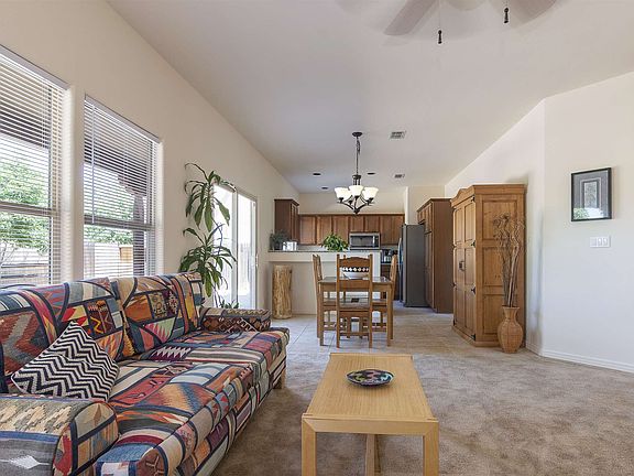Take advantage of the conveniences of in-town living while still maintaining a private retreat in the comfort of your own home. This property which backs to greenbelt is situated on a beautiful tree-lined street with gorgeous views to the surrounding mountain vistas. The open concept floor plan allows for spacious, comfortable living, and large windows provide an abundance of natural light and tremendous views to the great outdoors. To top it off this home is freshly painted and features brand new cabinets, countertops and kitchen appliances. The master en-suite features a walk-in closet and dual sink bath vanity. 3 additional bedrooms provide plenty of space to accommodate overnight guests including one on the ground floor ideal for office or den, and large closets providing ample storage space. The beautiful property has a fully fenced backyard to maximize privacy and allow family and pets to enjoy plenty of outdoor space for fun and activities. Mature landscaping means that you can enjoy the beauty of the southwest in the privacy of your own yard. Shopping, dining, golf and entertainment venues are just minutes away. Additionally, Santa Fe's newest 98 acre SWAN park is just a few blocks down the road. This location is ideally situated for quick access to I-25 for route to Albuquerque and Highway 599 for the Los Alamos commuter.