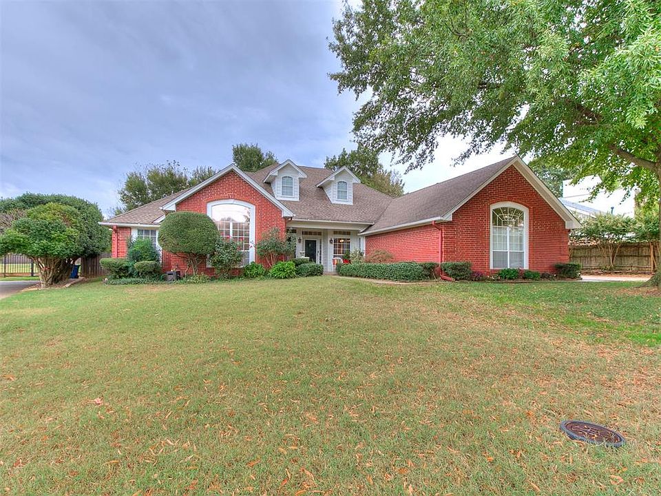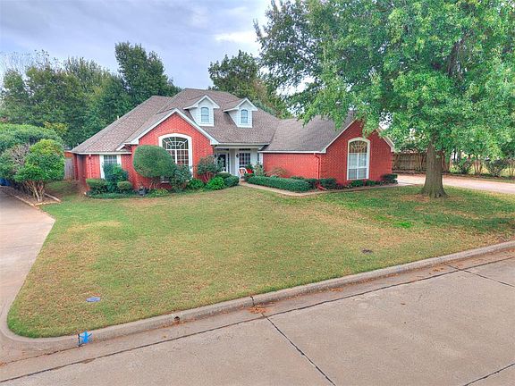 Situated on a half acre lot in the beautiful Crystal Lakes neighborhood, this home features 4 bedrooms, 2 and half bathrooms, 2 living and 2 dining areas. The kitchen has been fully remodeled and features granite countertops, an island, gas cooktop and stainless steel appliances. The primary suite is large with great natural light and a door to the back patio. The en-suite includes a large tub, shower and double vanities. The front room would make a great office or can be used as a 4th bedroom. The backyard is accessible from the living room and primary bedroom and features an oversized covered pergola. The half acre property has been well maintained and feels extremely private. Additional updates include wood-look tile throughout, newer HVAC and fresh exterior paint. Crystal Lakes is a gated neighborhood located off of Highway 9 with quick access to Norman and Oklahoma City. The neighborhood amenities include two residential lakes and walking trails.