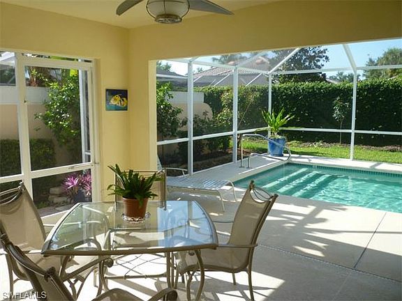 Bright & spacious 2/2 + open den Capri model with heated pool, built with DiVosta's poured concrete construction and set amid lush landscaping in the award winning community of IslandWalk - known for its mature landscaping and miles of winding lakes, unsurpassed amenities and great central location. Home features include granite countertops, new toilets, upgraded fixtures, tile through main living areas, ceiling fans, custom lighting on lanai, fenced pool equipment, professional landscaping, sealed garage floor, garage cabinetry, alarm system, central vac and so much more. Amenities include resort & lap pools, tennis, bocce, putting green, fitness center, car wash & gas station, beauty parlor & nail salon, restaurant, post office, professional social director and a vast activities program - all with low HOA dues. Florida resort style living at its best. Just one look and you'll know you want to be here!