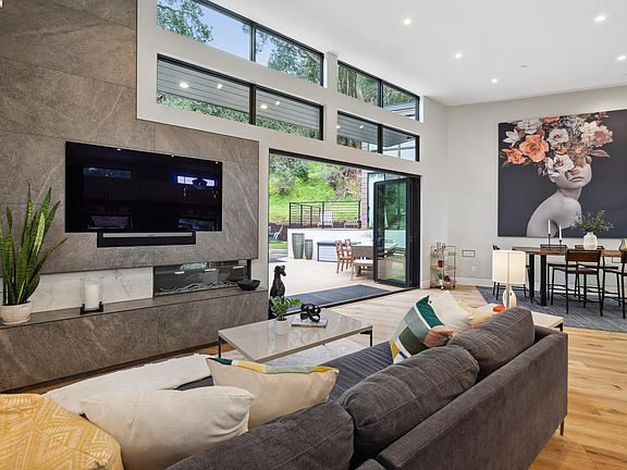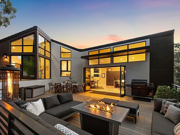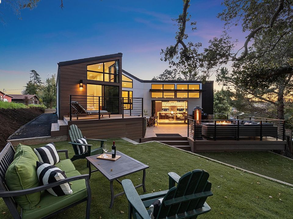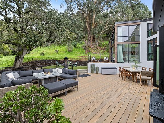 Secretly tucked up a private, winding driveway in a lush and wooded setting, an extraordinary life awaits in this brand new Modern with 3BR/2.5BA across 2352 SQFT. A dramatic foyer with a striking chandelier and glass staircase, a work room/wine cellar, powder room, walk-in storage/coat closet, laundry room and extra wide two-car garage complete the first floor. Upstairs, the great room boasts living and dining areas and a kitchen with custom cabinetry, oversized island, and top-of-the line appliances and fixtures. Folding glass doors extend the room onto the expansive deck and backyard. Indoor/outdoor living is easy with multiple areas for play and entertaining surrounded by California Oaks. Up a split level, find two sunny bedrooms with cedar closets. One has sliding glass doors to a private deck, and both share a marble bath. The primary suite has its own private deck, a large walk-in closet with custom storage, and an ensuite split bath with a spa shower, a double vanity, and heated flooring. A 2-car garage with EV charging is fueled by Tesla solar panels with batteries in another flexible utility room. Top-rated schools are a short hop away, and nearby highways 580 and 13 start a quick commute. Enjoy life more with the ease and beauty of this exquisite modern construction!