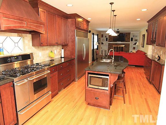 Stately brick home in desirable Oak Park. This 2754 sq ft home features 5 BR's and 3 BA's (1 BR 1BA on first floor), hardwood floors throughout(no carpet), remodeled gourmet kitchen, remodeled master bath, formal LR and DR, FR open to kitchen with fireplace, 27x10 screen porch, 2 car carport, concrete basketball pad, storage shed, playhouse, and 1582 sq ft unfinished basement. This home is conveniently located near Hwy 70, Crabtree, Rex Hospital, RDU, and 540. Move in ready home waiting for new owner!
