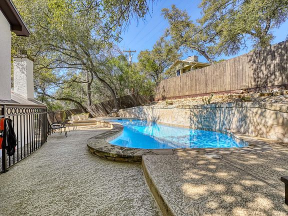 My Gosh, Another 40K price reduction! Wonderful 3 bedroom, 2 full with a half bath home, - with fresh crisp exterior, GREAT VIEWS! wonderful landscaping touches; a wonderful pool and fountain create an oasis. (Will nominate as, "BEST CARED FOR" -any day, anytime). Clean, very functional interior space ready for new owner's touches. pass through kitchen with dining on the way to family or first living area. All beds up, great views and privacy. Detached Garage with extra covered carport. Question about traffic safety as to 2222 egress and ingress addressed by center turn lane.