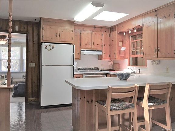 Well loved original family owned brick home! Open and very spacious rooms throughout. The living room is drenched in sunlight and opens to a den with gas fireplace and charming brick wall. Mounted TV in this room will remain. Large kitchen open to dining area with skylights and L shaped bar. Original knotty pine is in excellent condition. Bedroom wing can be closed off for privacy or hiding unmade beds :) Off the extra room/sunroom is the 2nd full bath and laundry. Washer and dryer gifted to new buyers. Side door leads to a large patio area. Double driveway plus extra pad for RV. Pick fresh pears in your backyard which is fenced. If you are looking for a BASEMENT, you'll find this one to be in excellent condition and it's DRY! The 3.5 ton gas pack was installed in 2017. Are you scheduling your appointment yet? PLEASE NOTE: Sellers are having an estate sale and there are numerous rooms with items for the sale.