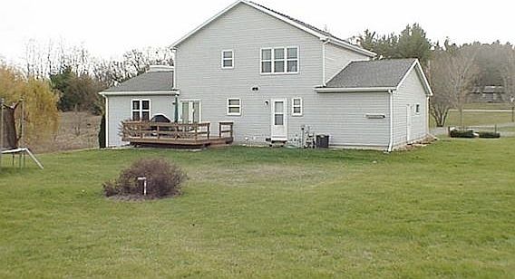 WONDERFUL 10+ ACRE COUNTRY SETTING AWAITS YOU! THIS 2 STORY TRANSITIONAL HOME FEATURES A FABULOUS GREAT ROOM W/VAULTED CEILING & FIREPLACE, RAISED FORMAL DINING ROOM W/OAK HARDWOOD FLOORS, LARGE EAT-IN KITCHEN W/BREAKFAST BAR, OAK CABINETRY, & WALK-OUT TO A LARGE DECK, FIRST FLOOR OFFICE/DEN, PRIVATE MASTER BEDROOM SUITE. THE LL FEATURES A FAMILY ROOM W/WOOD STOVE & WALK-OUT, 1/2 BATH, & A FINISHED HOBBY ROOM! LARGE 2+ CAR GARAGE, 28x30 POLE SHED W/CONCRETE FLOOR & 16X24 BARN