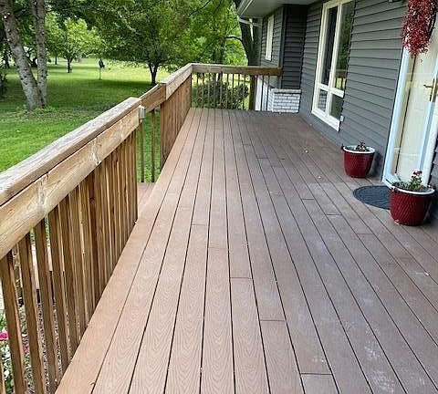 Sharp! Newly redone home! 3 bedrooms, 1.5 baths, living room plus family room joint with dining area. Large kitchen with all appliances & eating bar area.. Bedrooms have double closets & 2 have 2 sets of closets! Lots of closets! New paint, flooring, light fixtures, outlets, GFCI's, six ceiling fans, refaced kitchen cabinets now white color. New countertops & microwave. Full bath totally all new! Sinks, faucets, stools updated. Triple slider door wall off family room & dining area to back deck. Front has large deck too! Lower level has large rec room with new french door walkout area. Several workshop rooms & tons of storage everywhere! Shed in backyard. Pond that is stocked with fish! Nice setting!