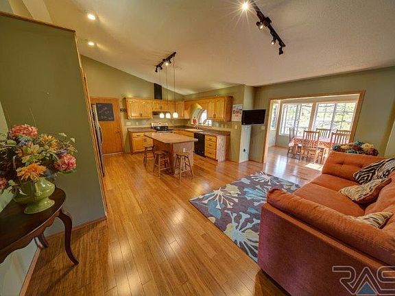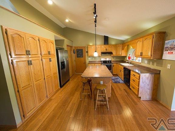 Excellent choice in desirable SE Sioux Falls location. Bright, spacious, south-facing walkout ranch has all the extras! Incredible room sizes & HUGE garage! Great front curb appeal & welcoming covered front porch. A step inside offers a pleasant surprise! Beautiful stunning bamboo floors grace the main living areas, French doors take you into the roomy light-filled formal living room. Soaring vaults & a bright kitchen w/ tons of cabinets, generous pantry space & island, stainless steel appliances. Wonderful sunroom off of dining/kitchen. Master suite (15x15) w/ private bath, large vanity, & WIC. Lower level presents comfortable family room w/ gas FP & walk-out to private patio. 2 more bedrooms (18x13 & 15x13, one a pass thru), 3rd bath, & spacious mechanical room. Nearly 12,000 sq ft lot, underground sprinklers. Huge 42x22 garage on west side of homes doesn't detract from the excellent front appeal. Property sets high, never had water issues here. Front load washer & dryer included.