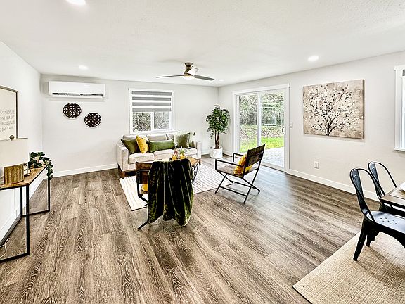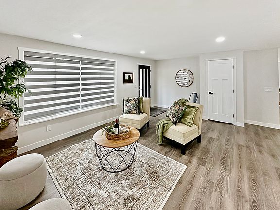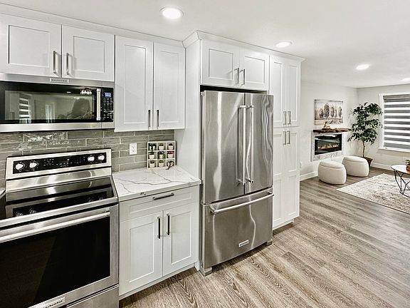 Stunning rambler fully remodeled. Stylish laminate flooring throughout entire home, open & inviting floor plan offers great room & living room. Living room off entry with electric fireplace, amazing kitchen open to generous dining area & great room perfect for entertaining. Stainless appliances, HUGE island seats a crowd, gorgeous quartz counters + large pantry cabinet. Slider off dining room leads to patio & rear yard. Ample bedrooms, primary w/private bath, both showers with quartz surrounds & counters. New painted millwork & luxury blinds throughout. Washer & dryer included. Walking distance to Lady of Lake Restaurant. Owner pays water. Tenant pays utilities.