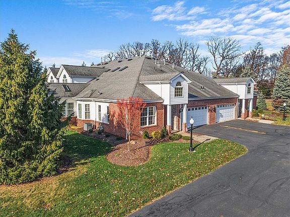 Single level living and a maintenance-free lifestyle. Greet guests in a 16' Cathedral entrance. Enter paneled study through French doors and inside is custom bookcases and a coffered ceiling. Oversized laundry with abundant cabinetry and double closet. 48" vanity with solid surface countertops and high end custom mirror are found in the powder room. 9' ceilings throughout the first floor. Generously sized formal dining room w/custom Ethan Allen chandelier. Amazing kitchen recently updated with Stainless JennAir appliances including a gas range w/convection oven! Huge center island kitchen with exotic Durado granite. Glazed cherry cabinetry throughout the home. Adjacent to kitchen is the solarium brightened with 2 skylights and cathedral ceiling with ceiling fan. Off the solarium is the patio with pavers and landscaped privacy. Stacked stone fireplace is the focal point of the great room with a 75" Sony TV included. Primary bed/bath with dual closets, solid surface shower, jetted tub