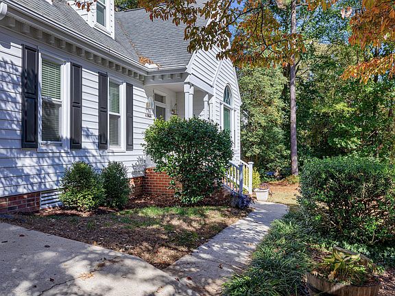 Welcome to this beautiful home tucked away on a tree lined street in desirable North Raleigh! Step into the soaring two story living room featuring stunning vaulted ceilings, brick fireplace, and large arched window that fills the space with natural light. Detailed millwork frames the formal dining room, which opens to a private deck perfect for entertaining or enjoying the peaceful wooded backyard. The kitchen features bright white cabinetry, granite countertops, brass fixtures, pendant lighting, and a large center island offering ample prep space. A spacious breakfast nook surrounded by windows creates the perfect spot for morning coffee or casual dining. The main level primary suite offers privacy and comfort with hardwood floors, dual vanities, a soaking tub, separate shower, and spacious walk in closet. Upstairs you will find two large secondary bedrooms, a versatile loft space and an oversized bonus room ideal for an additional 4th bedroom, home office, media space or playroom. Home has been freshly painted with neutral tones. Enjoy the tranquility of a wooded lot while being just minutes from shopping, dining, and major thoroughfares. Offering the perfect combination of privacy and convenience in one of North Raleigh's most sought after areas.
