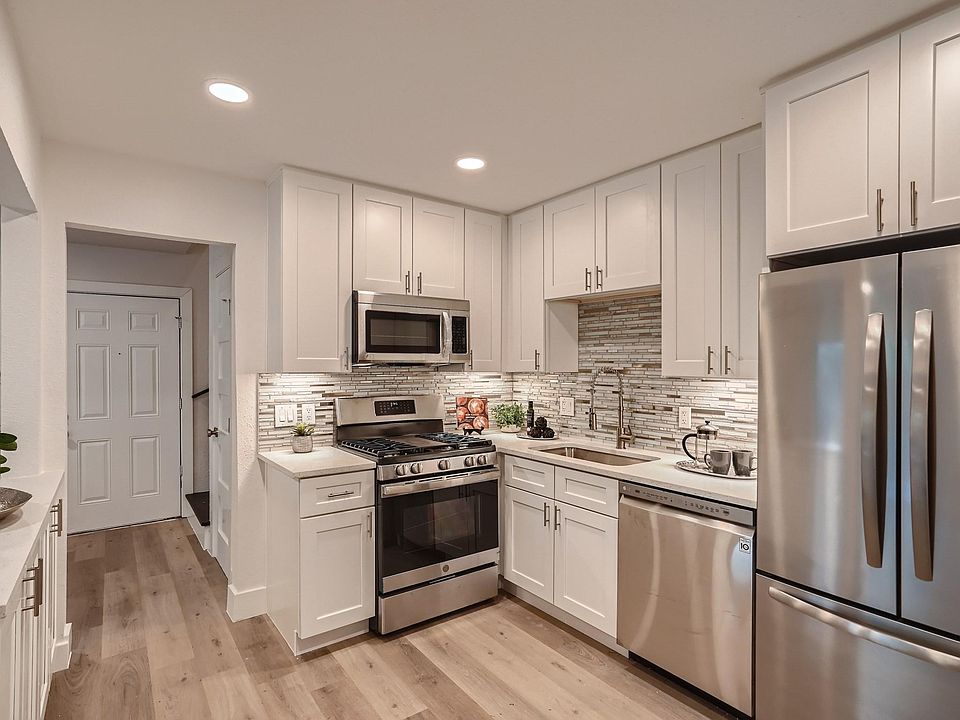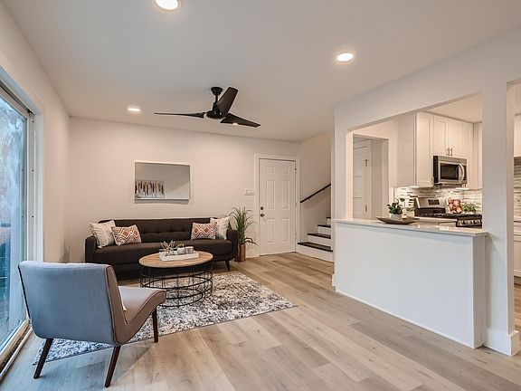 Remodeled 2 bedroom/1.5 bathroom townhouse in a 4plex building walking distance to Central Market. This home features quartz counters in kitchen & bath, stainless steel appliances w/5 burner chef's stove, tile backsplash, designer plumbing fixtures, fresh paint & premium tile/faux wood floors. Enjoy lower utility bills with energy efficient construction, newer double paned windows & LED lighting/ceiling fans. This home lives large with an open kitchen, dining and living floor plan downstairs with two bedrooms upstairs. The kitchen has under cabinet lighting and soft close cabinets. There are ample windows & 2 in blinds which provide excellent natural lighting. The private, fenced back patio is the perfect place to entertain or simply enjoy your morning cup of coffee. The refrigerator, washer/dryer are included. There is a private laundry room off the patio. Premium 78745 location close to downtown, Central Market, Regal Cinema & shops/restaurants on South Lamar with east access to Ben White, Mopac & I35.