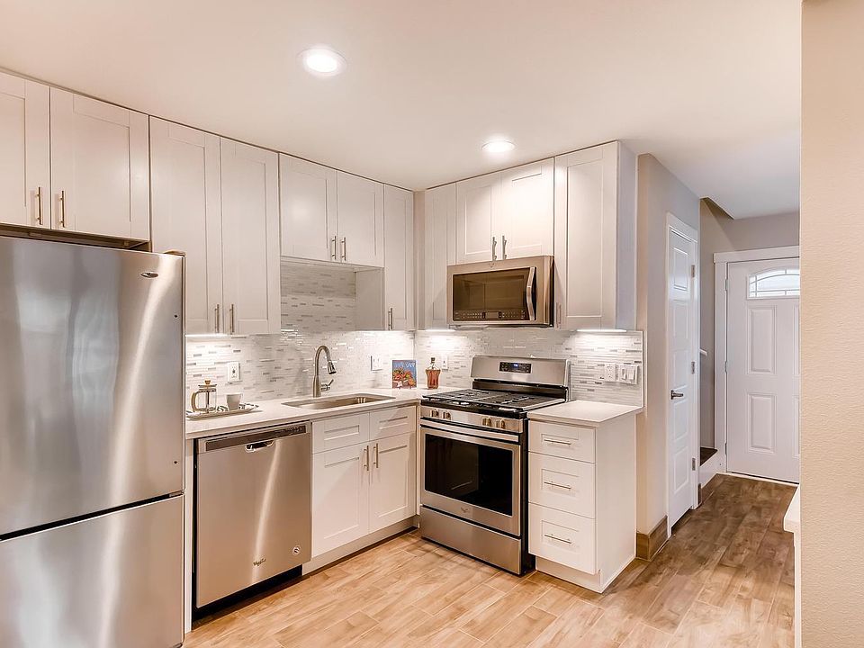 Fully remodeled 2 bedroom/1.5 bathroom townhouse in a 4plex building walking distance to Central Market. This home features quartz counters in kitchen & bath, stainless steel appliances w/5 burner chef's stove, tile backsplash, designer plumbing fixtures, fresh paint & premium tile/faux wood floors. Enjoy lower utility bills with energy efficient construction, newer double paned windows & LED lighting/ceiling fans. This home lives large with an open kitchen, dining and living floor plan downstairs with two bedrooms upstairs. The kitchen has under cabinet lighting and soft close cabinets. There are ample windows & 2 in blinds which provide excellent natural lighting. The private, fenced back patio is the perfect place to entertain or simply enjoy your morning cup of coffee. The refrigerator is included and there is a private washer/dryer room off the patio. Premium 78745 location close to downtown, Central Market, Regal Cinema & shops/restaurants on South Lamar with east access to Ben White, Mopac & I35..
