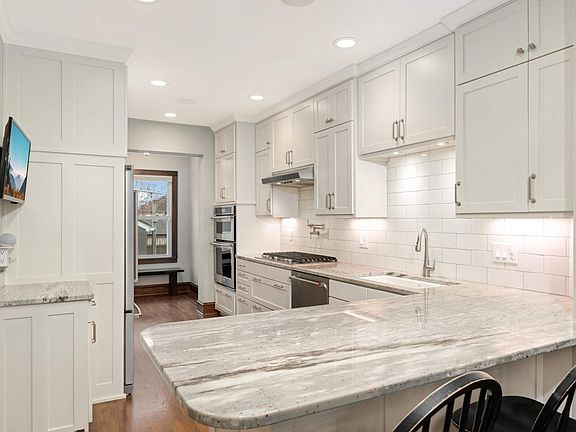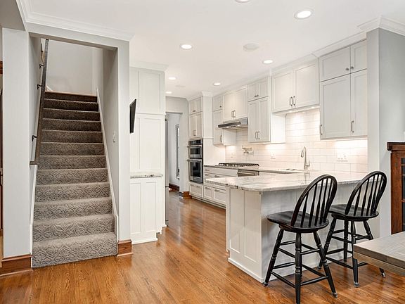 The entire main level flaunts original hardwoods and built-ins. The kitchen overhaul was thoughtfully designed made reality with custom cabinetry to maximize use of space by utilizing pullouts. Stainless appliances, double wall oven, cooktop and vent hood, large refrigerator with ice & water.