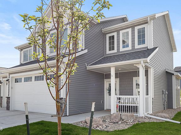 NO SPECIAL ASSESSMENTS! Nestled in a cozy, maintenance-free community on Bismarck's northwest side (ELK RIDGE/HORIZON DISTRICT) with grass and snow care done for you! This stunning three-bedroom, three-bathroom two-story home offers the perfect blend of style, comfort, and is just like new, but without all the new build hassles! Plus, it's within walking distance of both the elementary and middle schools! Step inside to be greeted by soaring 18-foot ceilings in the living room, where large contemporary windows fill the space with natural light. The open-concept kitchen, dining, and living area creates a spacious and inviting atmosphere—ideal for entertaining family and friends. Upstairs, the master bedroom suite boasts a generous walk-in closet and a private bathroom with dual sinks. Two additional bedrooms share a full guest bathroom, complete with double sinks and a split privacy door for added functionality. A built-in homework/mail desk in the upper hallway adds convenience and organization. The three-stall fully insulated and heated garage comes equipped with hot & cold water, a floor drain, and custom flooring. The home is also set up for a gas generator and includes a security system as well. Outside, the fully landscaped backyard features a maintenance-free pergola and patio fence, providing the perfect space to unwind. Don't miss your chance to own this beautiful, move-in-ready home in an unbeatable location! GRASS CUTTING/WATERING & SNOW CARE TAKEN CARE OF BY THE HOA- NO SPECIALS! INCLUSIONS: *Wifi Thermostat* Over/airfyer* Garage drain/water* Washer/Dryer* Upgraded Quartz Counter-tops* Window Coverings*
