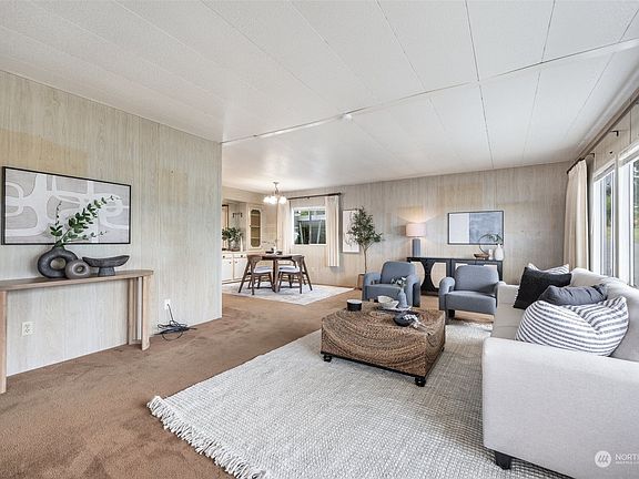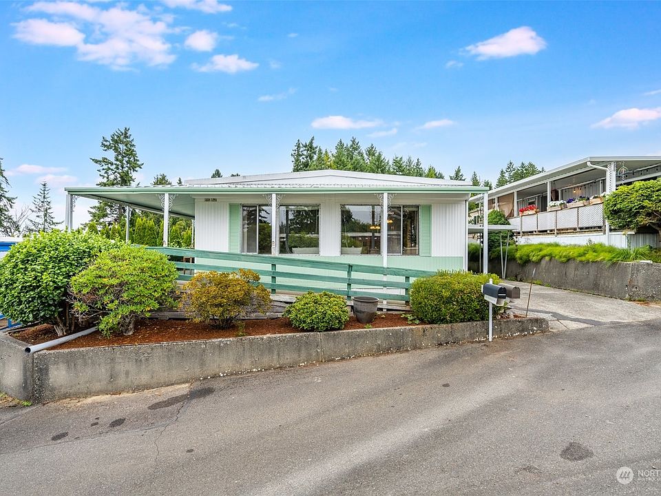Welcome to this delightful home nestled in a vibrant 55+ community, offering a serene and enjoyable lifestyle. Relax and unwind on the extensive deck, enjoying the breathtaking views of the Puget Sound. The completely renovated kitchen with stainless steel appliances, shaker style cabinetry, vinyl flooring, and updated lighting adds to the charm and functionality of this idyllic home. This beautiful setting provides the perfect backdrop for tranquil moments and memorable gatherings with friends and neighbors. Experience the beauty of the surroundings and the warmth of the community w/its own stunning private beach, Clubhouse, outdoor heated pool, RV parking, and activities, making this home a true haven for you to enjoy.