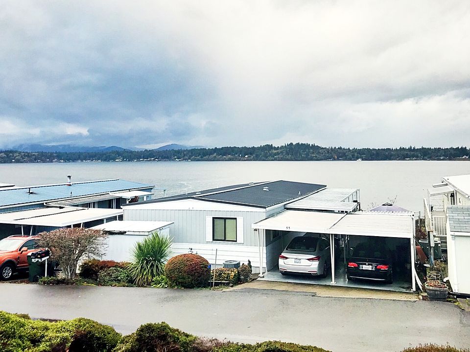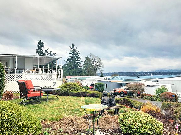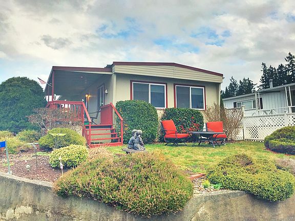 You won't Believe the gorgeous views of the Sound from this adorable 2 bedroom manufactured home in the sought after 55+ Community of Seashore Villa. This home's cozy covered patio invites you to drink your morning coffee and watch the boats go by. Enjoy the beautiful private beach, the cabana, walking trails, outdoor swimming pool, RV parking, & more! $800/month space rent, Cash only, buyers must be 55+ years old & Park approved. Don't delay-this one won't last long!