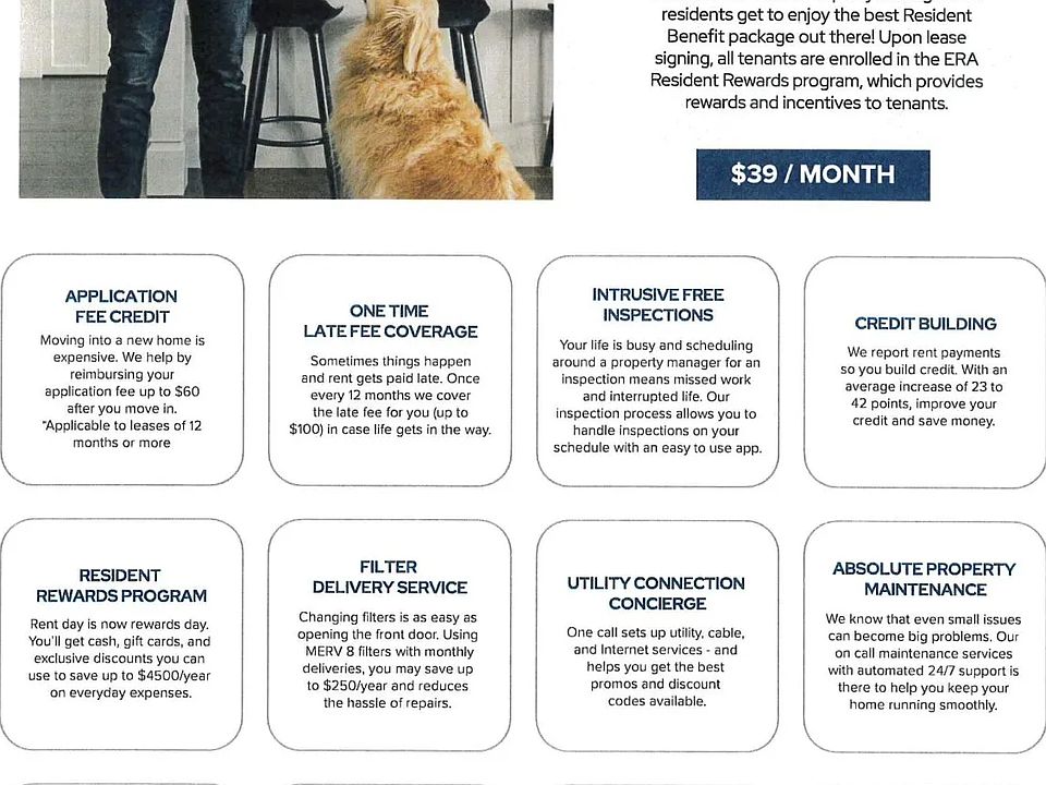 **All residents will be enrolled in Resident Benefit Package for $49.95/month, which includes HVAC filter delivery every 30 days, move-in concierge services, a best in class resident rewards program, Renters Insurance and more! See Agent or Screening Criteria for details.