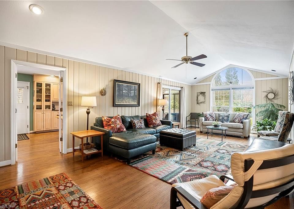 OPEN HOUSE EVENT THIS WEEKEND, MARCH 19th, 2-4 PM. COME JOIN US!! This jewel of a home shines brightly with surprising amenities! The spacious rooms have tons of natural light, gleaming hardwoods throughout, vaulted ceilings & two fireplaces added for charm & ambiance. In the den, the new gas logs are operated remotely, making extra warmth just a click away! Note the recently updated kitchen with its chopping block island, prep sink, custom cabinetry, solid surface countertops & lovely breakfast room, overlooking a stunning sunroom. The main level laundry is brilliantly disguised off a pretty powder room, making the most of every square foot. The primary suite has that 'wow factor' enhanced by a large walk-in closet, spa-like bath & bay window seating. Worried about the pain of downsizing? This floor plan dispels all anxiety with closets galore, a separate kitchen pantry, a storage room off the carport & 10 x 20 outbuilding, cleverly hidden in the inviting backyard landscape.
