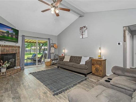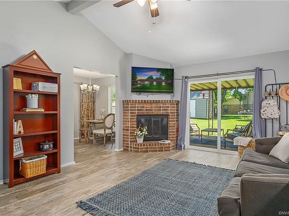 This beautiful starter home in the quiet Southgate Estates community has been completely remodeled throughout with modern color scheme, ceramic wood-look tile flooring, and new bedroom carpet. The cozy kitchen has been updated with painted cabinets, granite countertops and subway tile backsplash. The home has a great flow with a large living space with cathedral ceilings and beautiful brick wood burning fireplace. The spacious backyard is fully fenced in and has a storage shed and covered patio area perfect for entertaining. Enjoy great storage throughout the home, as well as a smart Nest thermostat and security system. The roof is only 2 years old and HVAC is 4 years old.