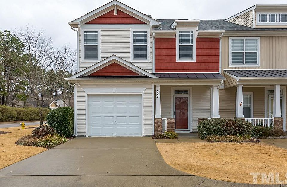 Adorable Craftsman style END UNIT Townhome with a ONE CAR GARAGE on a Cul-De-Sac. Interior has NEW CARPET and LAMINATE FLOORS. FRESH PAINT throughout. Family Room has Fireplace with Gas Logs. 42" Maple Cabinets in the Kitchen and Pantry for lots of Storage. Separate Dining area and a Breakfast Bar. MASTER SUITE has Vaulted Ceilings and Two Large Walk In Closets. MASTER BATH has separate GARDEN TUB and SHOWER and Dual Vanity. Close to major shopping, Triangle Town Center, and RDU!