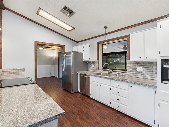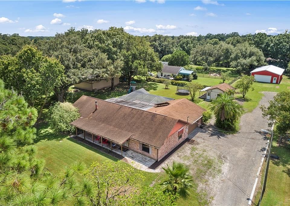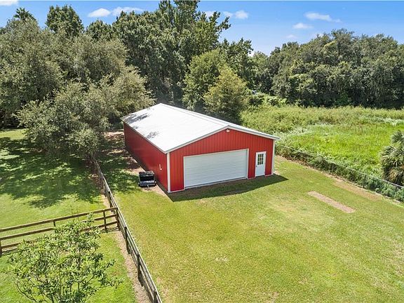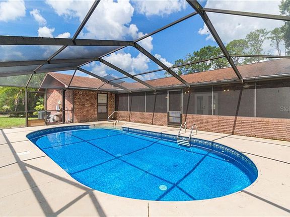 Enjoy the "Country Ranch" style pool home that is located on a one acre lot with detached metal garage. The open floor plan interior includes decorative lighting & plumbing fixtures; painted concrete, laminate & tile flooring, an ornamental stone faced wood burning fireplace, vaulted ceilings and wood window blinds. The spacious kitchen has been remodeled and includes wood cabinets, farm sink, stainless appliances and a walk in pantry. The spacious dining room has French doors that open up to the large screened 184sf Lania & in-ground pool for entertaining. The attached oversized 2 car garage has plenty of room for extra storage. At the rear of this property is a detached 30x50 metal garage with water & electricity, perfect....for storing all of your outdoor toys! Also included is a finished detached 396sf office/in-law suite with bathroom. Other great features of the home include a remote camera/ security system, huge backyard and a Nest A/C controller. No HOA or deed restrictions and is not located in a flood zone. Conventional, FHA and VA financing available.