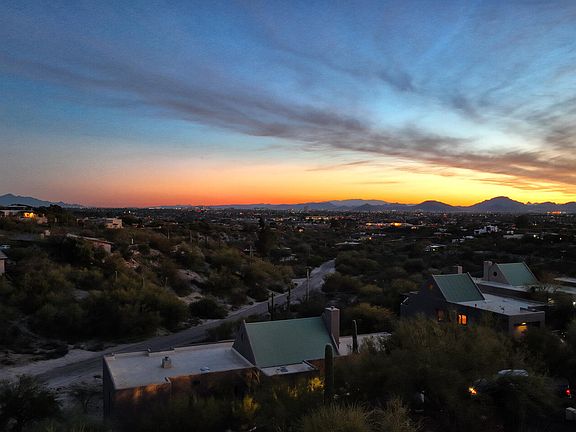 Stunning Custom Classic Southwest Home with a Spanish Colonial Flair sits high on a hill with Spectacular city views. Private Rear Yard with New Pool, Brick Patio's and Charm. Interior features split bedroom plan and sep Laundry, Saltillo tile throughout, Solid 8' Knotty Alder Doors and Trim, Large French Doors to wonderful patio spaces, High Ceiling's, Abundant natural light, Kitchen features white quartz counters all newer stainless appliances and wine fridge. Current owners utilized the 2 guest bedrooms and created a beautiful Suite currently being rented on rental sites with separate private entrance and mini split. Please note that with minor modifications it can be returned to 2 separate rooms. A Special Home!