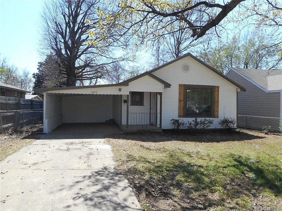 Totally renovated Bungalow with NEW kitchen cabinets, dishwasher, range, flooring, roof and more. 2 bedroom, 1 bath, 2nd living area could be an office or put in a closet and have a 3rd bedroom! Storage shed in back yard and a carport with room for more.