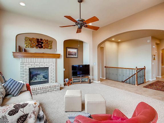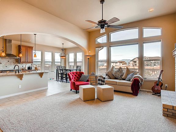Perfect single-family 4 bedroom, 3 bath ranch set at the end of a quiet cul-de-sac. Enjoy immaculate mountain views from an open living and kitchen floor plan. Stainless steel appliances compliment cool tile and plush carpet flooring leading into a cozy master bedroom suite with private vistas. The fully finished basement entertains two additional bedrooms for family or guests and walks out to one of the biggest lots in the community. The huge backyard is breathtaking complimented by the backdrop of the Rocky Mountains. Three minute walk to Chinook Trail Elementary School and access to the world-class Cordera Community Center gym and pool. This is truly the perfect home for any family.