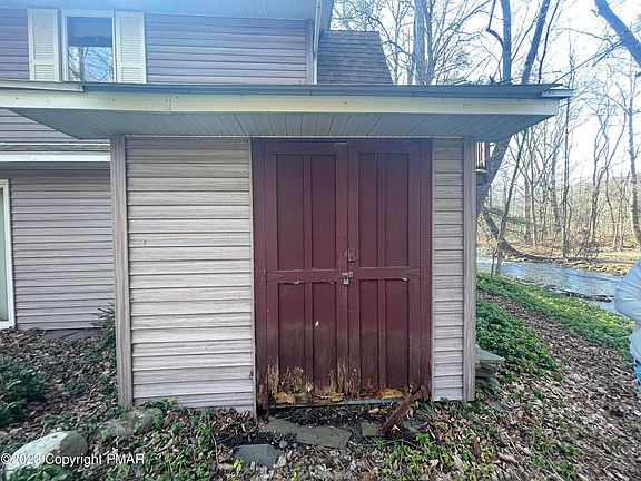 A BIG OPPORTUNITY!!!!! It is good because this home is located in a park like setting along a creek . Lovely 2 unit with mixed use village commercial zoning. 4 fireplace mantles, two fireplaces and two for wood stoves. Oak cabinetry in kitchen, with a fireplace, newer roof, tongue and groove floors. Beamed ceilings in front unit and tongue and groove ceilings on loft of back unit. Newer bathrooms
