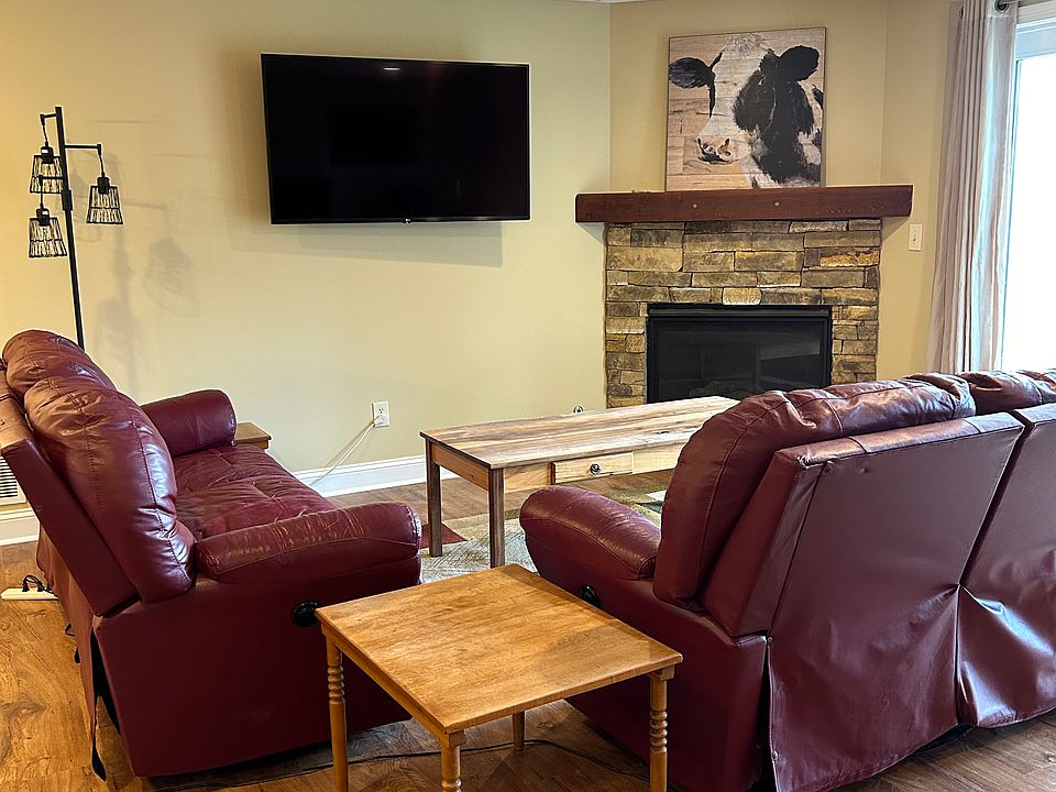 Furnished basement apartment for rent. Available for short term rental (1 month minimum). Approximately 1200 sq ft with private entrance and parking. Located in rural Whitestown but convenient to Anson shopping with easy access to I65 (exit 130), I865, etc. All utilities included in rent. This 2 bed, 1 bath apartment has large windows and a patio door that lets in plenty of light so that it doesn't feel like a basement. Bedroom 1 has a queen bed, tv and full closet, bedroom 2 has a twin over full bunk bed and closet. Washer/dryer included. Open concept kitchen, living area and office nook includes a fireplace, TV, and two reclining couches. Kitchen is fully equipped with everything you need to cook and entertain (no dishwasher). Wi-Fi, all utilities, and trash pick-up are included in the rent. Occupant is responsible for disposable items such as toilet paper, paper towels, etc. This is a smoke free apartment. Covered patio looks out on a small farm pond and farm fields. Deer and other wildlife are often seen in the evenings. Pets and children are up for discussion. All utilities are included in rent. Smoke free apartment.