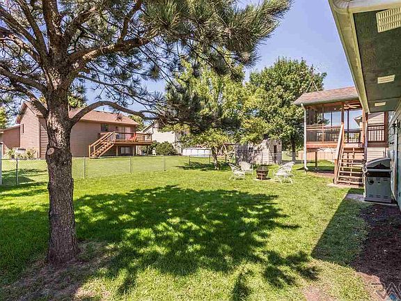 Great 6 bedroom family home with 3 bedrooms on main floor! Located in a quiet established neighborhood on the sought after West side of Sioux Falls! Vaulted ceilings in the living room and kitchen give a great open feel. Recently updated kitchen features granite counter tops and stainless appliances. Just outside the dining room slider is a large covered/screened in porch that welcomes the outdoors with no bugs! The back yard features a partial privacy fence along with mature shade trees. Garage is finished & insulated along with offering overhead storage.